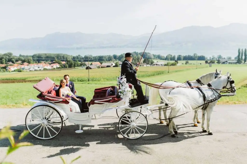 Der angegebene Preis ist immer pro Kutsche (bis zu maximal 4 erwachsene Personen + Kleinkinder auf dem Schoß möglich). Derzeit kosten 40 Min. € 105,- und 60 Min. € 140,-